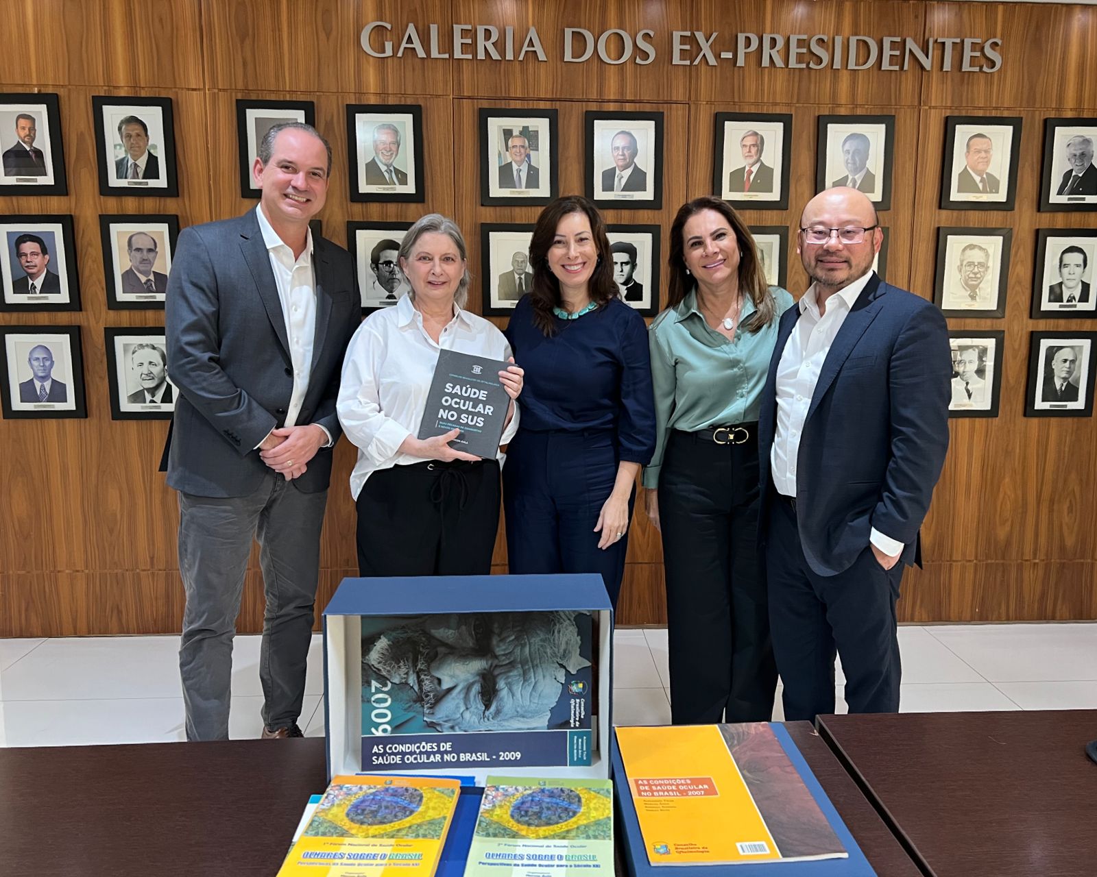 No encontro, a Diretoria do CBO entregou as publicações, que são de grande relevância sobre a saúde ocular do Brasil, e passarão a compor o acervo da Biblioteca do Congresso Americano.